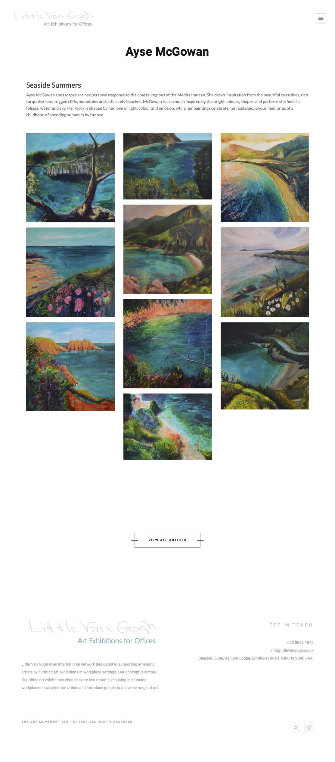 Collection of ten large scale paintings at Little Van Gogh, UK - office and work spaces are turned into art galleries where art is hung for two months before it moves into a new office environment, since September 2022